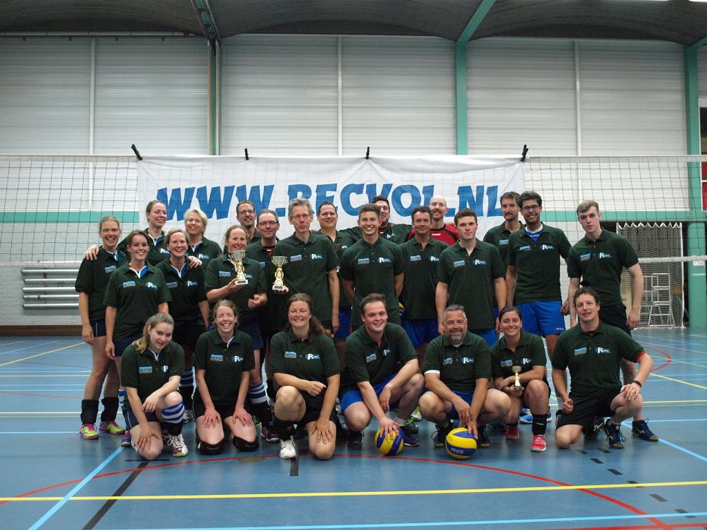 5 teams uit Maas & Waal en 7 teams uit Rivierenland streden met elkaar om de fel begeerde kampioenshirts. De wedstrijden gingen af en toe hard tegen hard. De teams waren fel en gaven geen punt cadeau. Maar buiten de wedstrijden om ging men juist heel sportief, collegiaal en gezellig met elkaar om. Er was volop ruimte voor een praatje of een dolletje. En de teams die vergeten waren om volleyballen mee te nemen … die konden ze gewoon lenen bij hun concurrenten. En zo hoort het ook!!