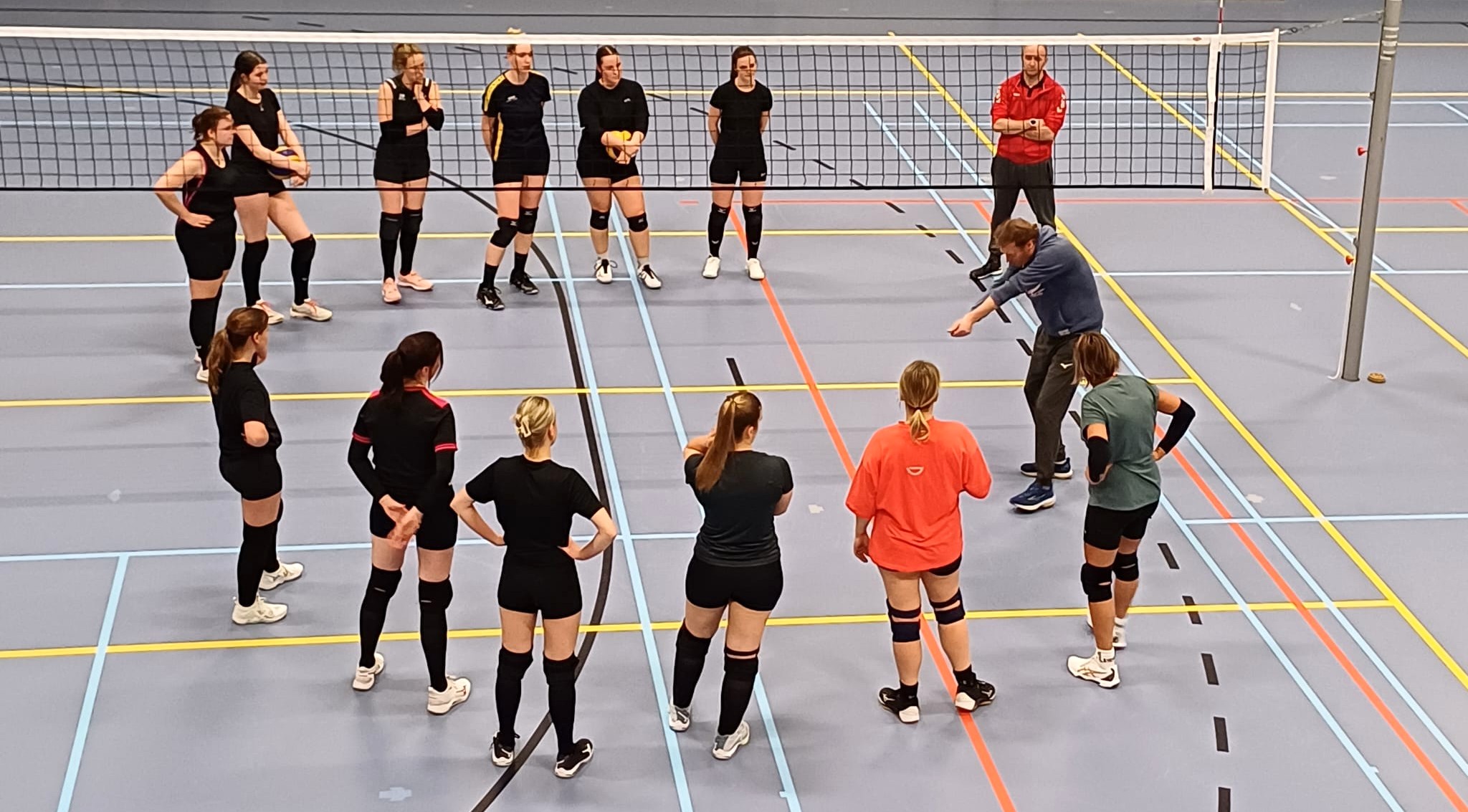 In een twee uur durende volleybalclinic werden de Lauwse dames door Matt door de mangel gehaald. Op aangeven van verbeterpunten door de trainers en de speelsters zelf heeft Matt in een 2 uur durend programma in moordend tempo veel fijne kneepjes van het spel bijgebracht. Hierbij was voor ieder wat wils: chaosbal, waarbij 2 ballen in het spel gebracht werden, zorgde eerst voor chaos. Maar na een paar aanwijzingen over de onderlinge communicatie en tactische tips liep het spel al snel veel meer gecontroleerd. Door de pass te brengen in een net iets langer vastgehouden positie van de gestrekte armen bleek de bal wonderbaarlijk veel zuiverder aangespeeld te kunnen worden. Een libero die heel luidruchtig haar plaats overal in het veld moet opeisen was even wennen. En door de setter een net iets andere positie ten opzichte van het net te geven werden de 3 meter aanvallen inderdaad 3 meter aanvallen in plaats van 4,5 meter en plots veel effectiever!